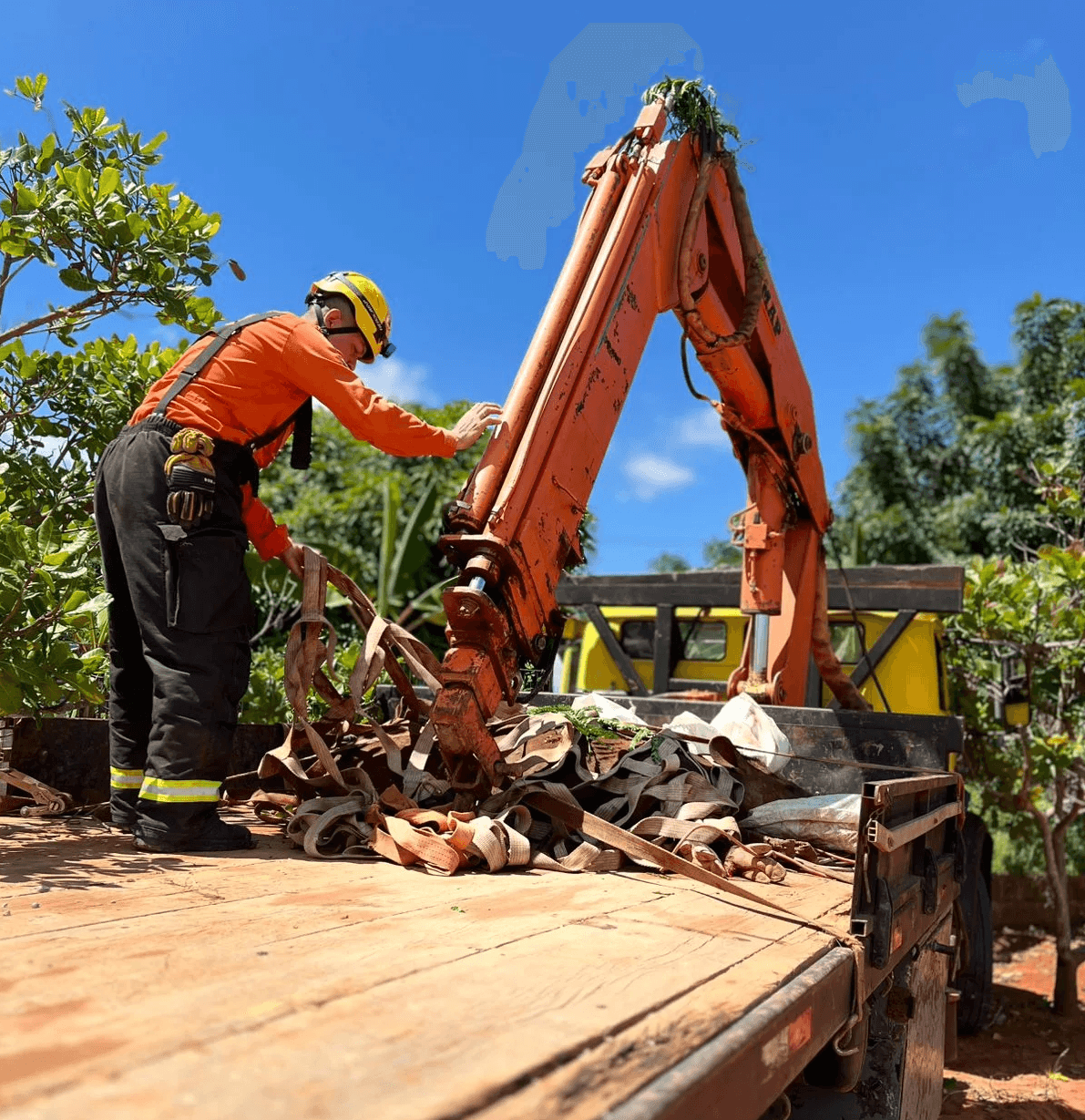 Diante da situação, a equipe realizou o manejo especializado para contenção do animal, utilizando técnicas adequadas e o apoio de um caminhão munck. A operação permitiu a imobilização segura da anta, garantindo condições apropriadas para o transporte.