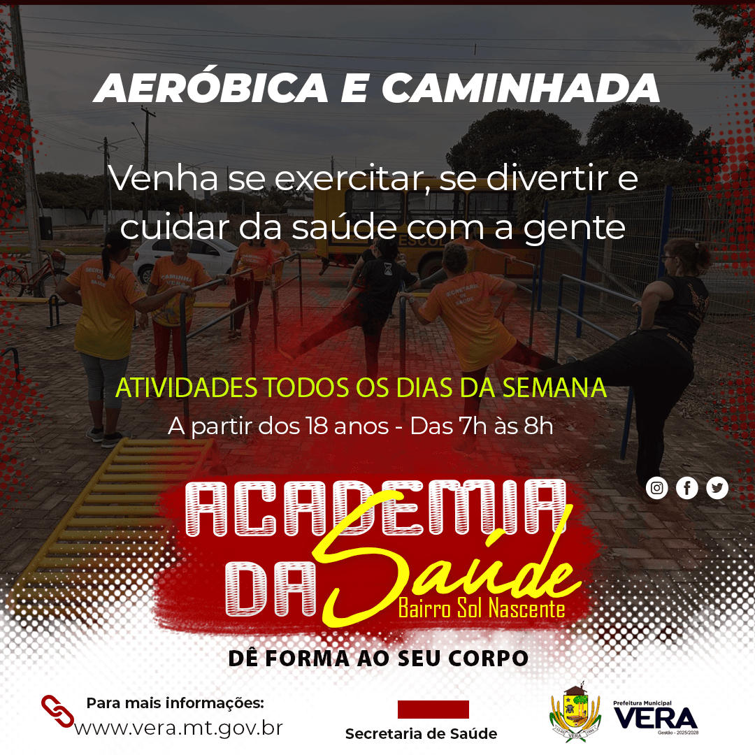 A Prefeitura Municipal de Vera, por meio da Secretaria de Saúde, convida toda a população para sair do sedentarismo e ganhar mais qualidade de vida! Estão abertas as inscrições para as atividades gratuitas do Polo Academia da Saúde.
