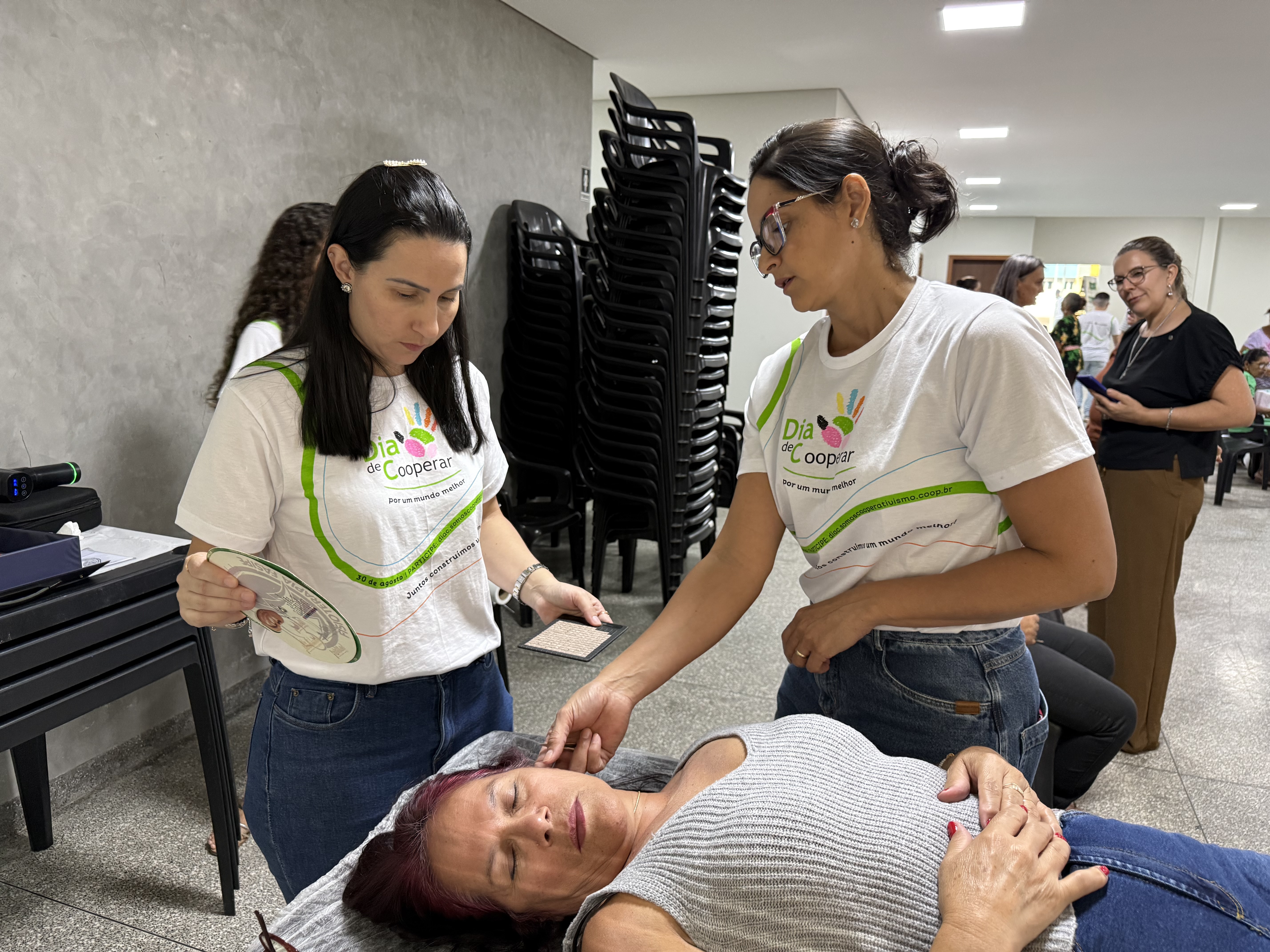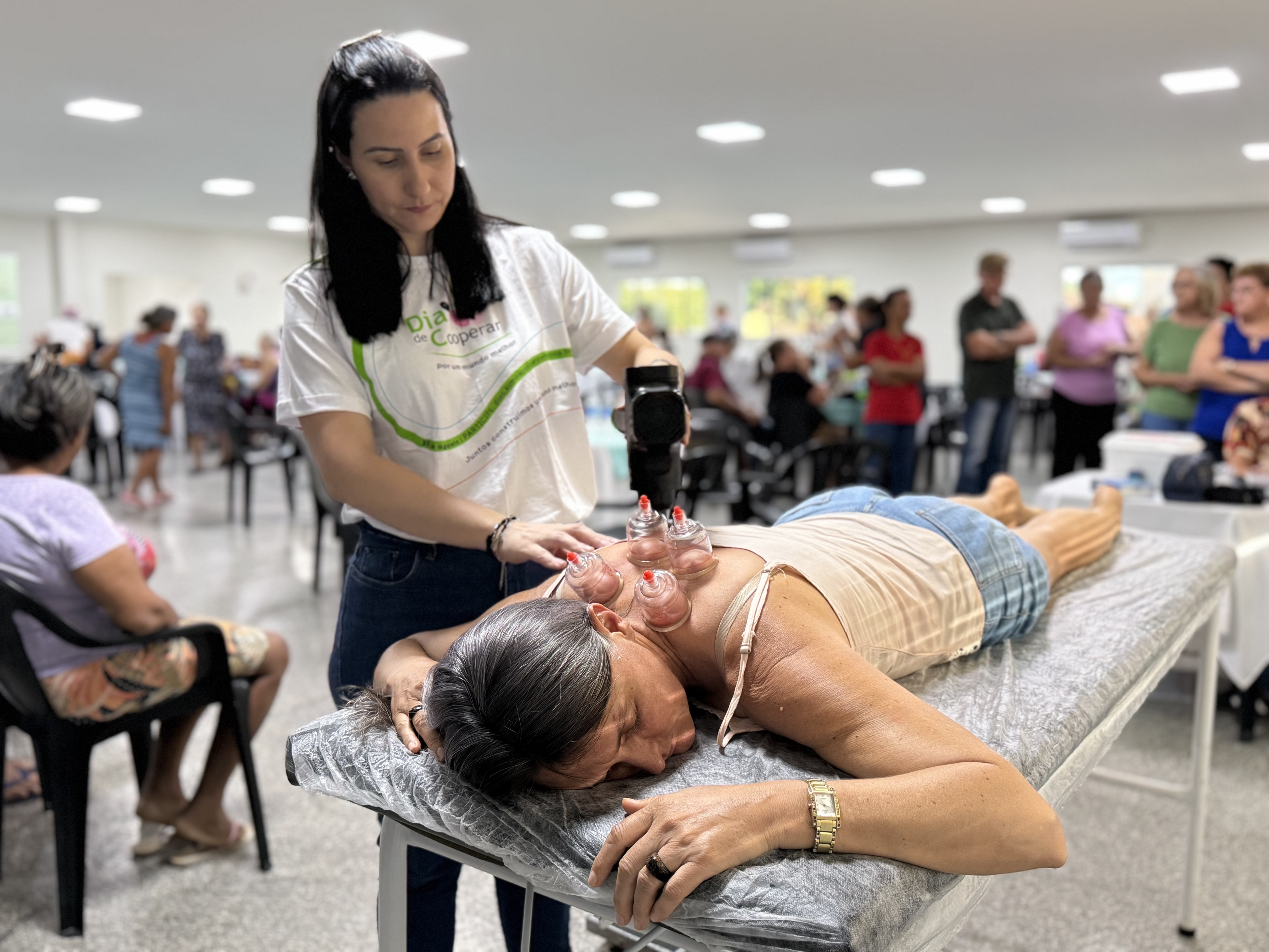 - Saúde e Bem-Estar: Aferição de pressão arterial, medição de glicemia, e serviços de fisioterapia (incluindo ventosaterapia e auriculoterapia) foram realizados, reforçando a importância dos cuidados preventivos.