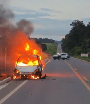 A ocorrência mobilizou a Polícia Militar, que foi acionada por motoristas que passavam pelo local e perceberam o veículo em chamas às margens da rodovia. Quando a equipe chegou ao ponto indicado, o automóvel já estava completamente tomado pelo fogo. Apesar da gravidade da situação e da intensidade das chamas, ninguém ficou ferido.
